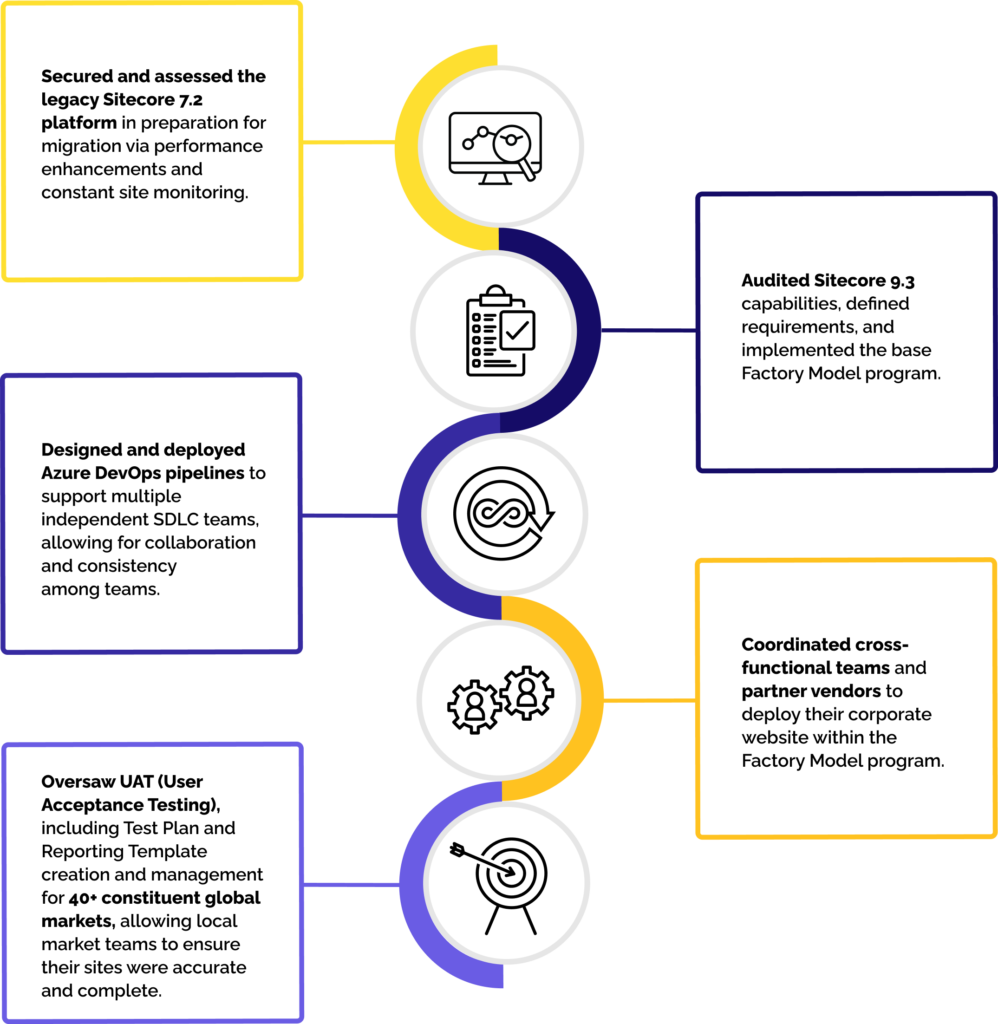 Coordinated cross-functional teams and partner vendors to deploy their corporate website within the Factory Model program.